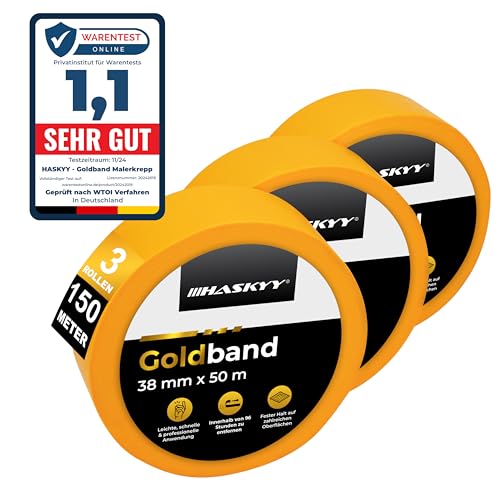 HASKYY guldband målningstejp 3 x målningstejp 38 mm x 50 m professionell maskeringstejp Washi tejp guld papperstejp självhäftande