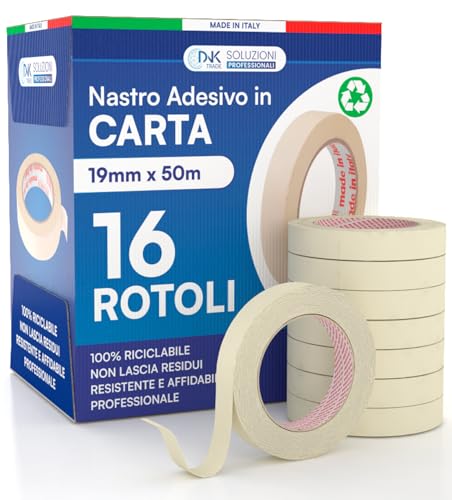 DNK TRADE Papperstejp 19 mm x 50 m för målning professionellt återvinningsbart gummipapper för maskering målning och blekning - 16 rullar