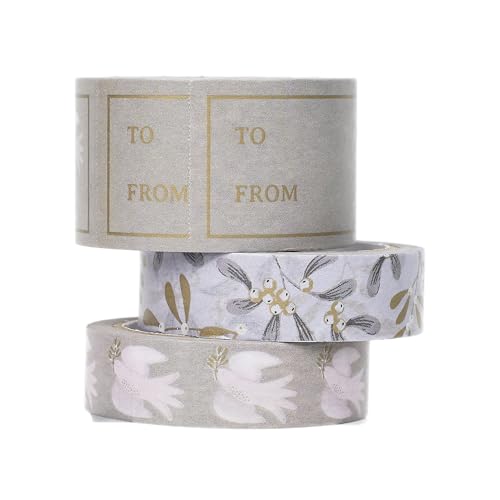 Talkbord 3 x presentförpackningstejp kit och pappersrullar, vit mistel papperstejp wrap kraft, washi, dekorativ design för semesterpackning, jul, hantverk och scrapbooking