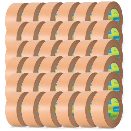 m-office papperstejp kraftpapper, tejp för kartongförpackningar, frakt, flyttar och hantverk, förpackningstejp, brunt kraftpapper tejp (36 st, 50 mm x 80 m)