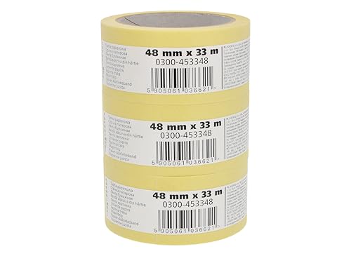 Scley 3 st maskeringstejp/krepptejp 48 mm x 33 m Serie 545, papperstejp för målare, maskeringstejp med gummilim