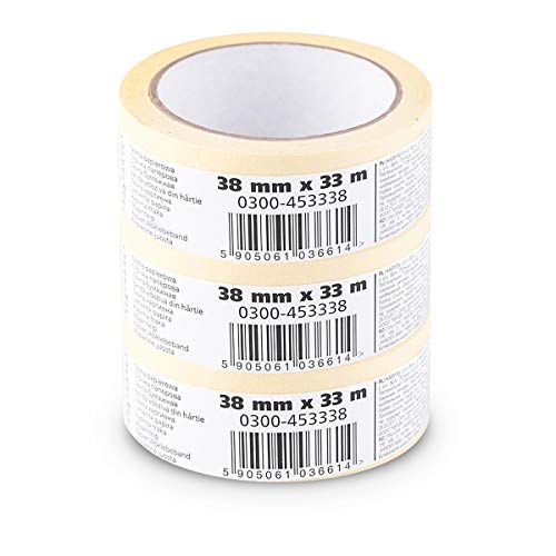 Scley 3 st maskeringstejp/krepptejp 38 mm x 33 m Serie 545, papperstejp för målare, maskeringstejp med gummilim