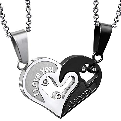2 stycken rostfritt stål kedja flickvän och vän vänskap, halsband för kvinnor män par kedjor för henne och honom, hjärtkedja med hänge kedjor för par kärlek silver svart 50 cm & 55 cm