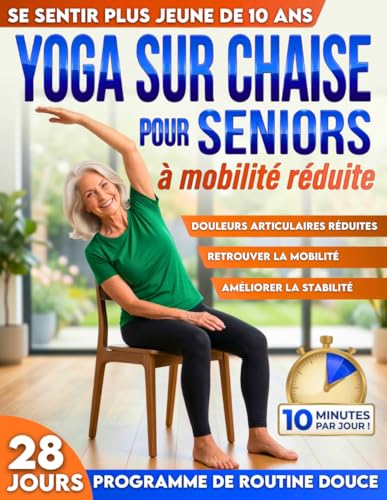 Yoga sur chaise pour seniors à mobilité réduite: Rajeunissez de 10 ans, évitez les chutes, réduisez les raideurs et restez autonome | 10 min par jour pour l'équilibre, la force et la perte de poids