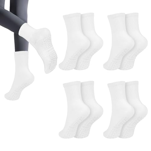 AOOWU 4 par yoga greppstrumpor kvinnor, halkfria yoga grepp pilatesstrumpor för kvinnor, halkfria pilatesstrumpor, grippy strumpor damer mitt på vaden greppstrumpor, yoga strumpor för balett, dans