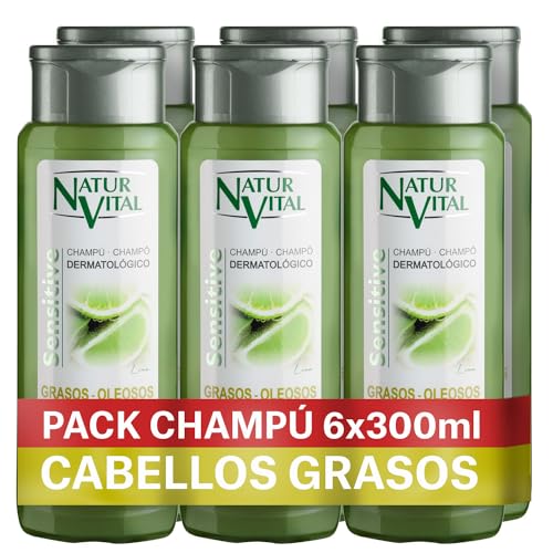 NaturVital 6-pack naturligt schampo för fet hår, utan parabener och silikon, för atopisk hud och känslig hårbotten, herr och dam, 6 x 300 ml