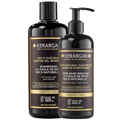 Kerargan - Duo Anti-Håravfall Schampo och Leave-In med Ricinolja För Torrt, Skört och Svagt Hår - Stärker och Stimulerar - Utan Sulfater, Parabener och Silikoner - 500ml + 350ml