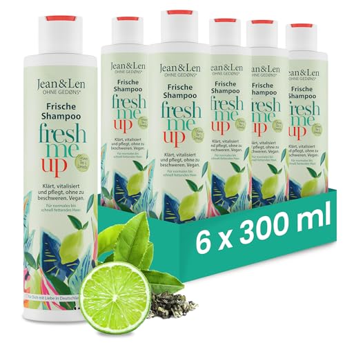 Jean & Len Fräsch Schampo Grönt Te & Lime, för normalt till fett hår, skyddar mot fuktförlust, balanserande vård, utan parabener & silikoner, veganskt, 6 x 300 ml