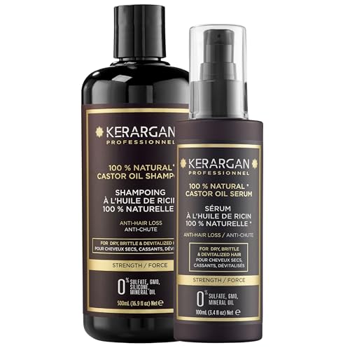 Kerargan - Duo Anti-Håravfall Schampo och Serum med Ricinolja För Torrt, Skört och Svagt Hår - Stärker och Främjar Tillväxt - Utan Sulfater, Parabener och Silikoner - 500ml + 100ml