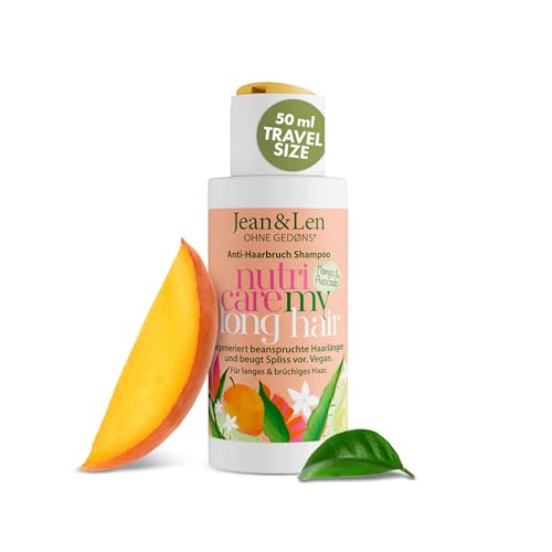 Jean & Len Nutri Care-Schampo Med Doft Av Avokado Och Fruktig Och Fräsch Mango, För Långt Och Skadat Hår, Regenererar Ända Ut Till Topparna, Utan Parabener Och Silikoner, Veganskt, Resestorlek, 50 Ml