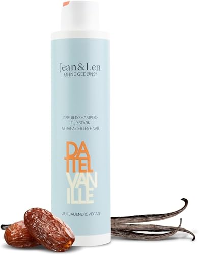 Jean & Len Rebuild Shampoo Date & Vanilla, för kraftigt skadat hår, gör att håret ser starkare och glansigare ut, med vaniljdoft, schampo utan silikoner & parabener, vegan, 300 ml