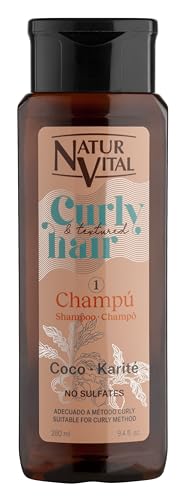NaturVital Curly schampo för lockigt, vågigt eller texturerat hår, med kokosnöt och shea utan sulfater och parabener – 280 ml