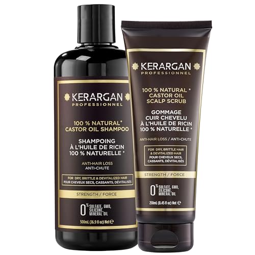 Kerargan - Duo Anti-Håravfall Schampo och Skrubb med Ricinolja För Torrt, Skört och Svagt Hår - Renar, Stärker och Främjar Tillväxt - Utan Sulfater, Parabener och Silikoner - 500ml + 250ml