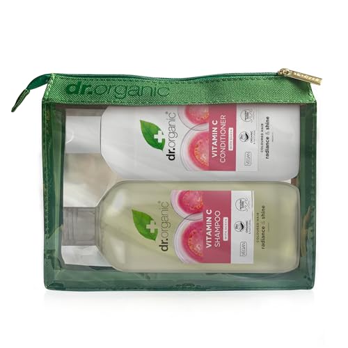 Dr Organic C-vitamin med ekologisk guava-schampo och balsam, färgat hår, naturligt, veganskt, utan parabener och SLS, ekologisk, 265 ml x 2