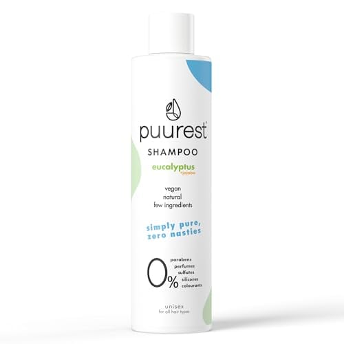 Puurest schampo utan sulfater, parabener och silikoner - utan alkohol, utan salt, utan doftämnen, naturligt & veganskt, sulfatfritt, parfymfritt - med eukalyptusolja - 250 ml
