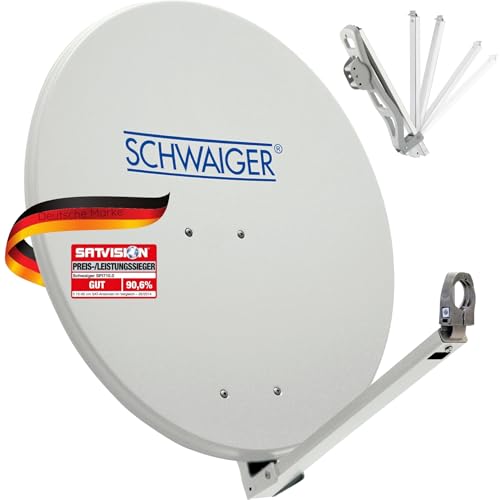 SCHWAIGER -210- Parabolantenn | 75 cm | Satellitantenn | med LNB-stödarm och mastfäste | integrerad kabelstyrning | parabolantenn i aluminium | 74,5 x 84,5 cm | ljusgrå
