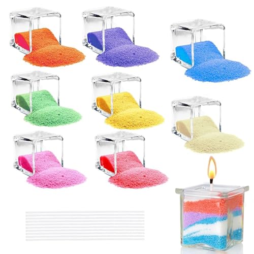 Scentoria Ljussand - Paraffinvax för Ljustillverkning, 8 Färger, 10 Vekar, Vaxgranulat för Gjutning, Sand för Gör-Det-Själv (240 g)