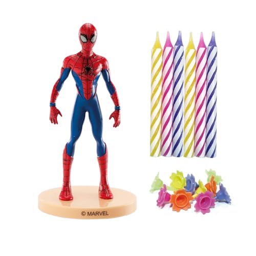 dekora - Dekorativt ljus | Oparfymerat | PVC Spiderman Kit med 10 ljus för tårtdekoration | Paraffinvax