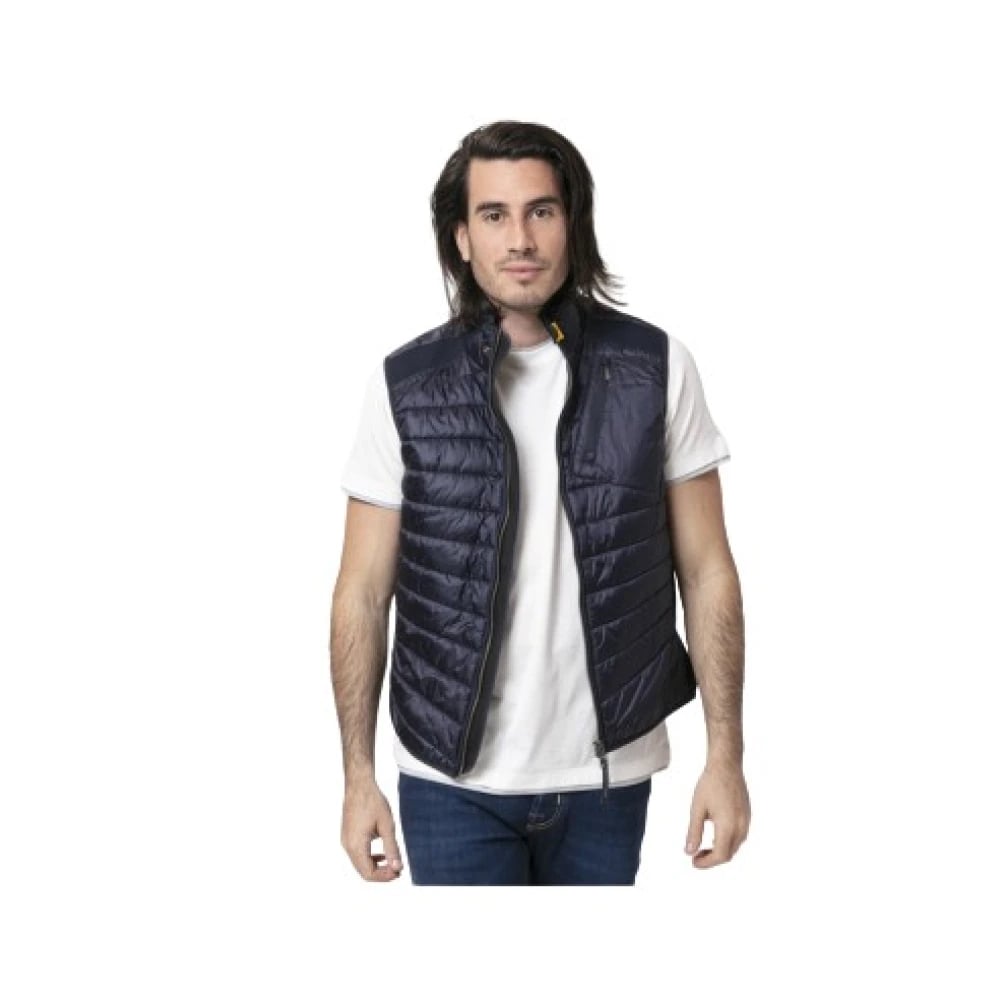 Parajumpers, Jackor , Herr, L, Polyester, Marinblå Quiltad Ärmlös Jacka med Hög Krage