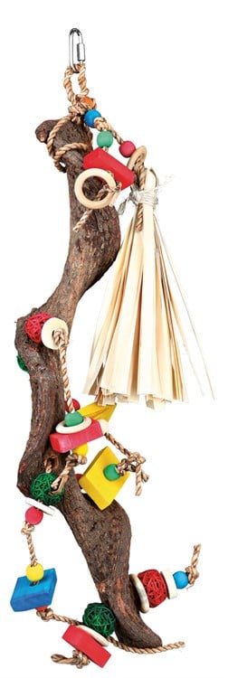 Hängande Leksak till Parakit/Papegoja - Träpinne med färgglada attiraljer