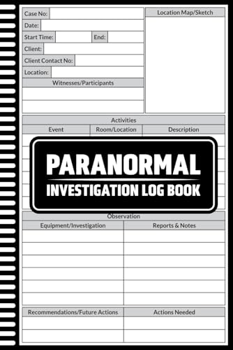 Paranormal Investigation Log Book: Ghost Hunting Case Log with Activity Tables, Site Notes, Witness Entries, and Investigation Recommendations