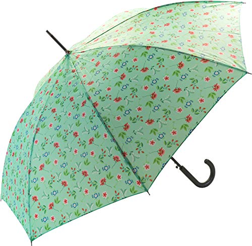 Kvinnors spö/rak paraply med blommigt tryck, Färg: grön, Diamètre 105 CM, Paraply