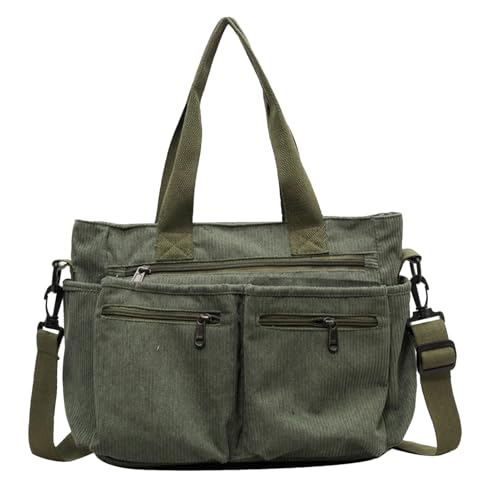 Corduroy tygväska, manchester tygväska - handväska med fickor kapacitet college tote väska | sling bag, midjeväska, resepaket för paraply, middagar, arbete, dejting, grön, Consulte la descripción