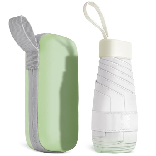 Aolso reseparaply, 6 spröt miniparaply litet UV-paraply, hopfällbart solparaply vindtätt regnparaply med kapselfodral, vikbart reseparaply bärbart fickparaply för män kvinnor, gRÖN, 6 Ribs