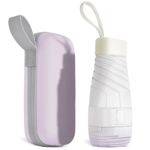 Wydexint Litet paraply, bärbart fällbart paraply, minireseparaply, lätt reseparaply, fickparaply, UV-vikbar med kapsellåda, resevatten- och vindtätt för män och kvinnor, lila, 14 cm diameter, 9 cm