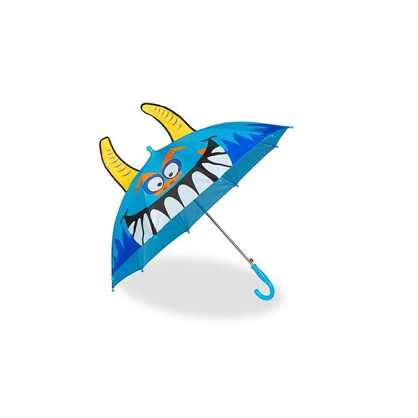 Relaxdays paraply barn, 3D-motiv monster, barnparaply pojke & flicka, Ø 78 cm, liten paraply med pinne, blå, blå, 75 x 78 cm
