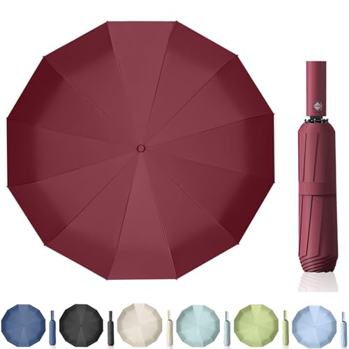 Poligono Paraply Stormsäkert, Fickparaply Stort för män och Kvinnor, Inverterat Paraply 10 Spröt, Automatiskt upp och Tillbaka, Kompakt, Diameter 105 cm, Röd