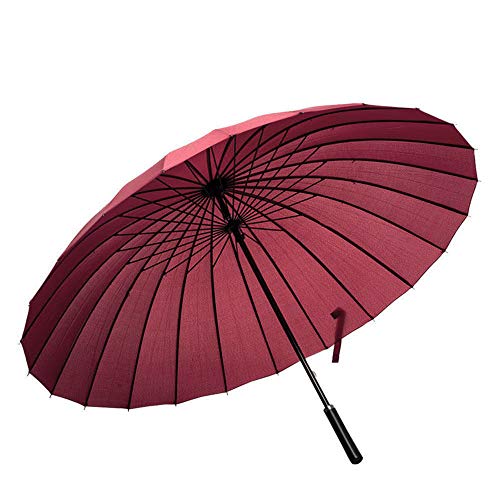 Lancoon 24 ribbor stort paraply mode långt handtag rak anti-UV sol/regnpinne paraply KS07röd