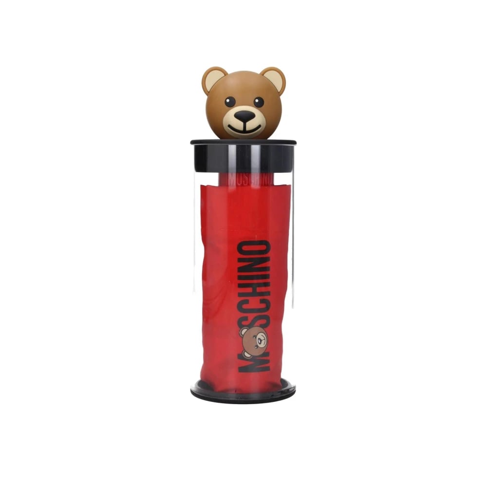 Moschino, Accessoarer , Dam, ONE Size, Polyester, Röd Polyester Logga Paraply med Clips