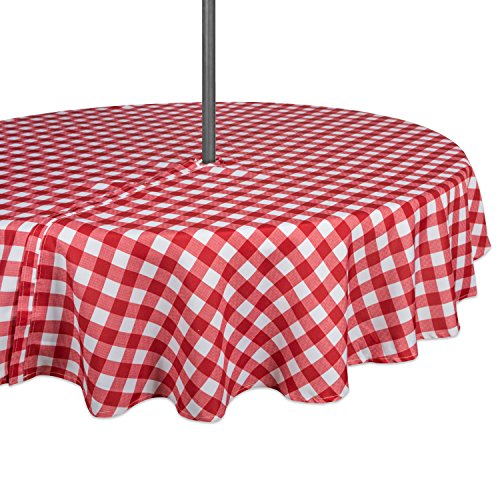 DII 100% polyester, spillsäker, maskintvättbar, bordsduk för utomhusbruk med paraply täckta bord, röd rutig, säten 4 personer, 152 cm rund dragkedja