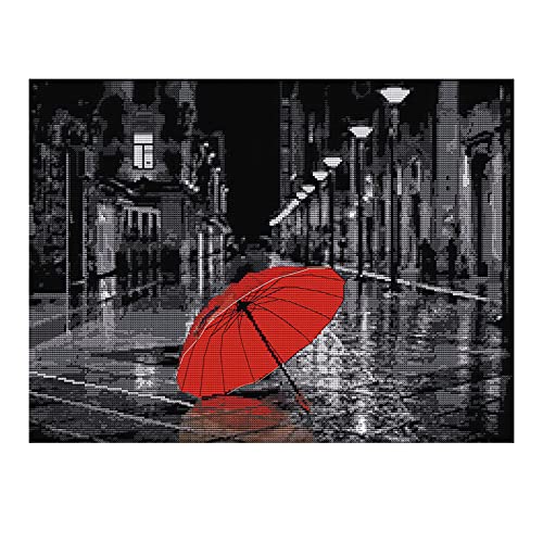 Cukol Förtryckt Broderikit Broderi Korsstygn Mönster Kit För Nybörjare, Rött Paraply Stämplade Broderier Korsstygnskit Korsstygnsmönster Broderimönster Korsstygnssatser Stamped Cross Stitch Kits