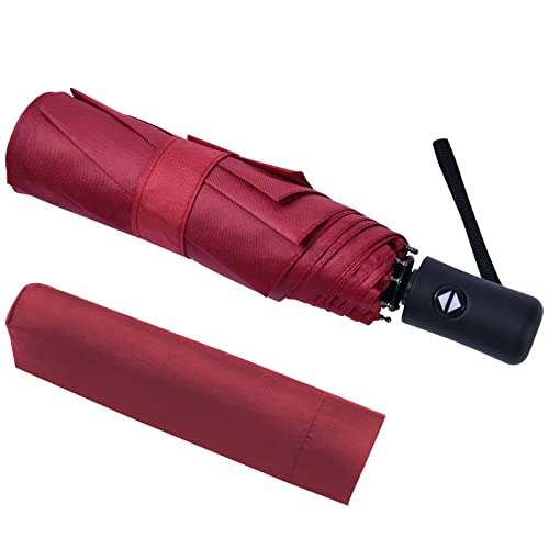 Vicloon Paraply, hopfällbart paraply med paraplyväska, automatisk Paraply, Vindtätt reseparaply, teflonbeläggning, kompakt, bärbar, stark, lätt, vindtät liten resa golfparaply - röd