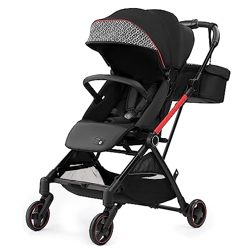 RoyalBaby Lätt barnvagn 360 vändbar sits, kompakt veck, bärbar resebarnvagn för småbarn med paraply, flerpositionsliggande, justerbar stor baldakin, röd ..