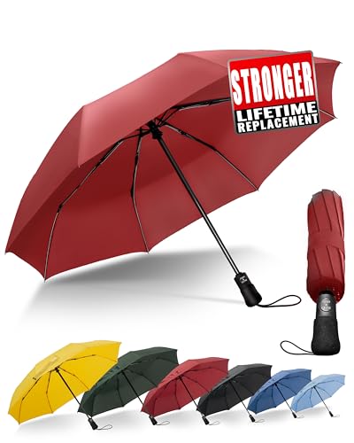 Chakipee Vindtätt fällbart reseparaply: bärbara paraplyer för herr, med automatiskt öppning och stängning, 210T överdrag, 97 cm stor öppen, 8 stänger, Röd