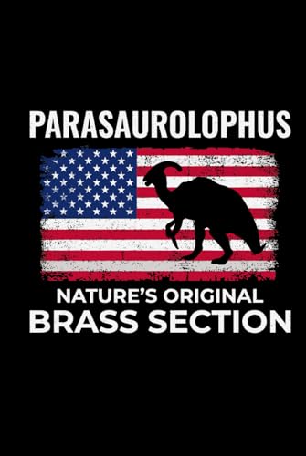 Parasaurolophus - Nature's Original Brass Section: American Flag Dinosaur Fossil Notebook - Funny Journal for Writing Notes, Paleontology & Science Lovers, College Ruled Lined Paper