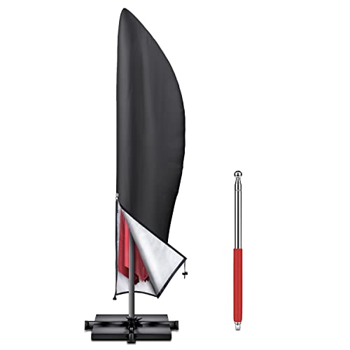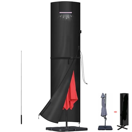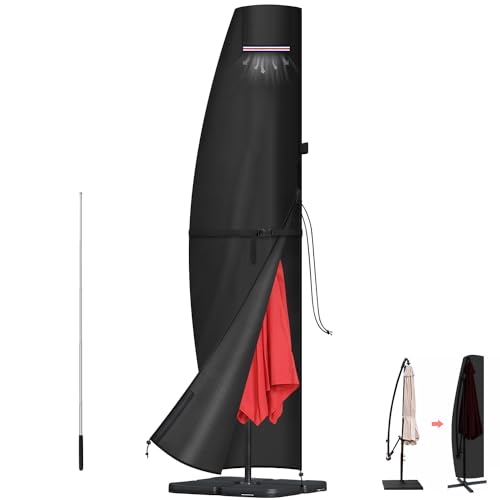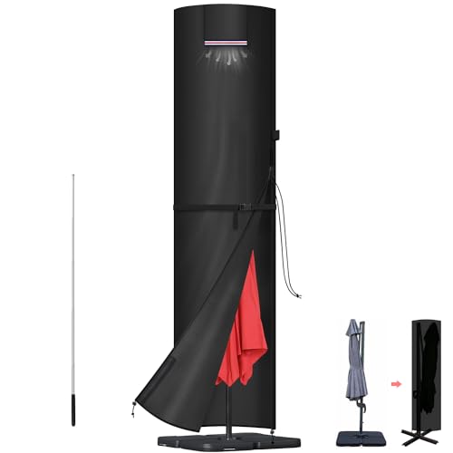 LAMUNI Utomhus Paraplyskydd, Parasollskydd med Stång, Vattentätt Paraplyöverdrag med Dragkedja, Stort Trädgård Parasollöverdrag, 420D Oxfordtyg Skydd för Fribärande Parasoll Ø 3-5m, 240x40/70/50cm