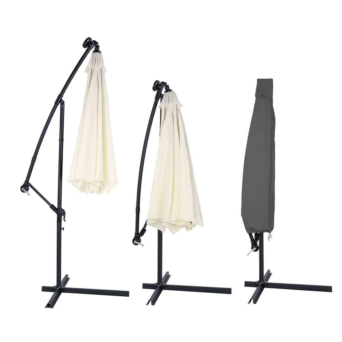 BROSYDA Parasollskydd, kantbärande parasollskydd (265 x 40/70/50 cm), trädgårdsparaplyskydd med dragkedja, hydrofobt Oxford-tyg, banan, parasollöverdrag – svart
