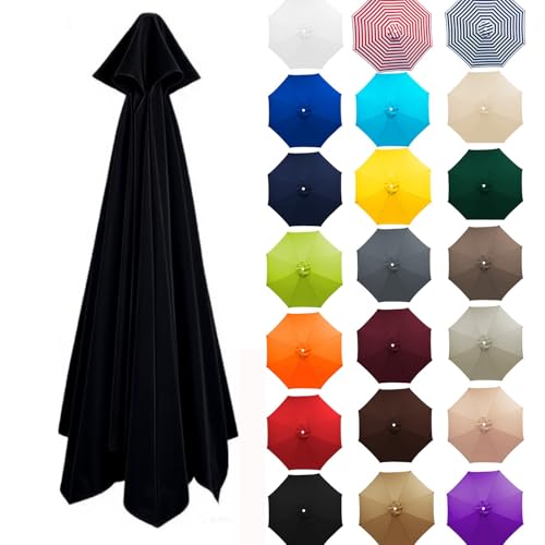 2,0 m till 4,0 m ersättning parasollskärm, 6/8 ribbor trädgårdsparaply ersättning parasolltyg, UV 50+ skydd för trädgård gård strandparaply (svart, 4,0 m/8 ribbor)