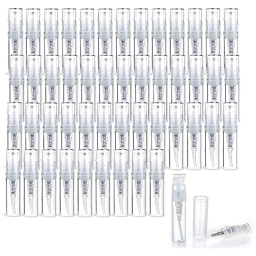 Sprayflaska liten, 50 stycken 2 ml parfymförångare på resan, mini parfymflaska påfyllningsbar för parfymprover, kosmetiska förångare för fester/kontorsro