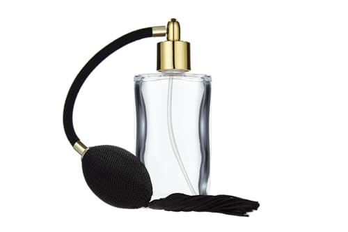 Parfymsprejflaska med bollpump: 100 ml vintage parfymflaska av glas i svart – parfymflaska tom – parfym sprayflaska – Fantasia parfymflaska