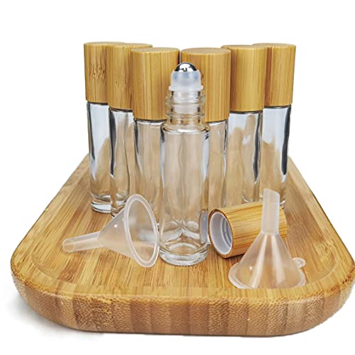 COSIDEA 18 st 10 ml bambulullsflaskor med bambulock för eteriska oljor tom glasrulle på parfymflaska (klar)