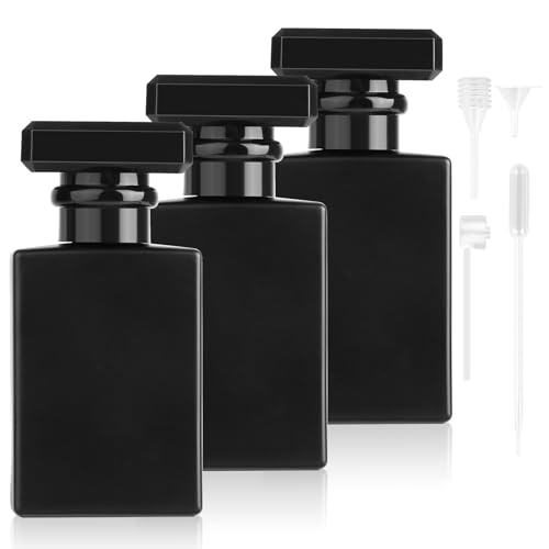 RVLZKCPG 3 stycken parfymsprejare, påfyllningsbara, 30 ml glas parfymflaska, tom, svart perfume Atomizer, parfym flaska med tratt droppare parfymdispenser för kvinnor och män