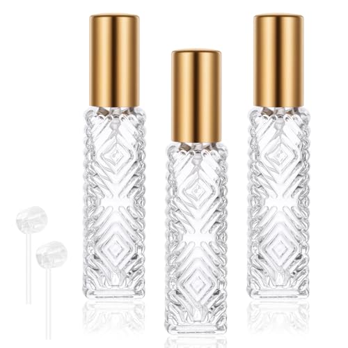 AOOWU Parfymflaska i glas, 3 st parfymflaskor i glas 12 ml, bärbar parfymflaska i glas med 2 st pipetter, påfyllningsbar atomizer glasflaska för resor, citat (guld)