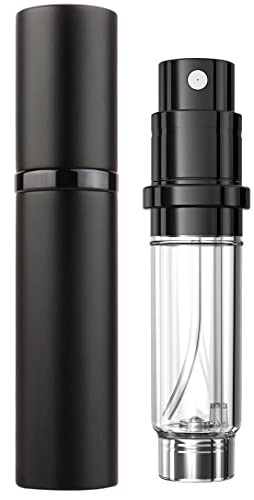 Travelofo Mini parfymflaskor, påfyllningsbar spraydispenser, 5 ml läckagesäker atomiserare för resor, lyxig present till män och kvinnor (svart)