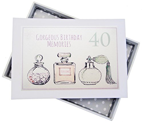 White Cotton Cards påminnelselåda för 50-årsdagen, stor, parfymflaskor, vit