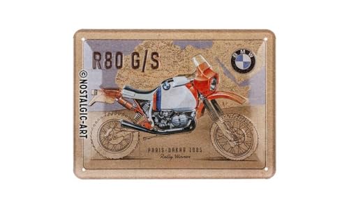 Nostalgic-Art Plåtskylt i retrostil, 15 x 20 cm, official license product (OLP), BMW – R 80 G/S Paris Dakar – Presentidé för BMW-fans, av metall, vintagedesign
